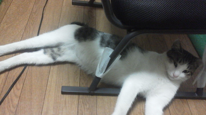 座椅子を倒して寝ていた・・・。